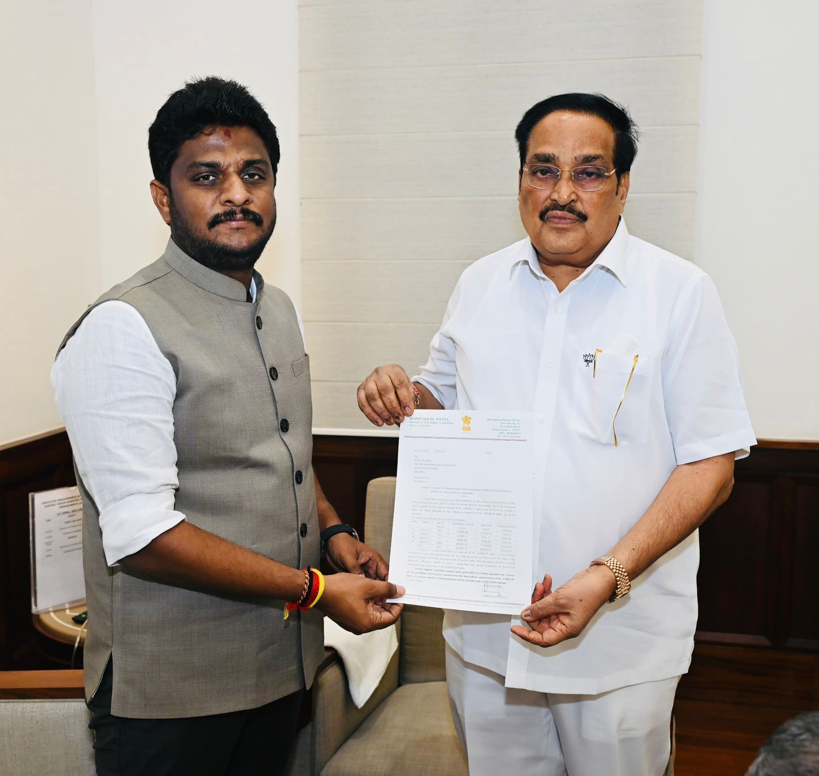 ಹಾಸನ: ಜಿಲ್ಲೆಯ ಗ್ರಾಮೀಣ ಜನರಿಗೆ ಶುದ್ಧ ಕುಡಿಯುವ ನೀರಿನ ಸೌಲಭ್ಯ ಒದಗಿಸುವ ಉದ್ದೇಶದಿಂದ ಜಾರಿಗೆ ತರಲಾಗುತ್ತಿರುವ ಜಲ್ ಜೀವನ ಮಿಷನ್ ಯೋಜನೆಗೆ ಸಂಬಂಧಿಸಿದಂತೆ ಬಾಕಿ ಬಿಲ್ಗಳನ್ನು ಪಾವತಿಸುವಂತೆ ಕೇಂದ್ರ ಜಲ ಶಕ್ತಿ ಸಚಿವ ಸಿ.ಆರ್. ಪಾಟೀಲ್ ಅವರಿಗೆ ಸಂಸದ ಶ್ರೇಯಸ್ ಪಟೇಲ್ ಮನವಿ ಸಲ್ಲಿಸಿದರು.