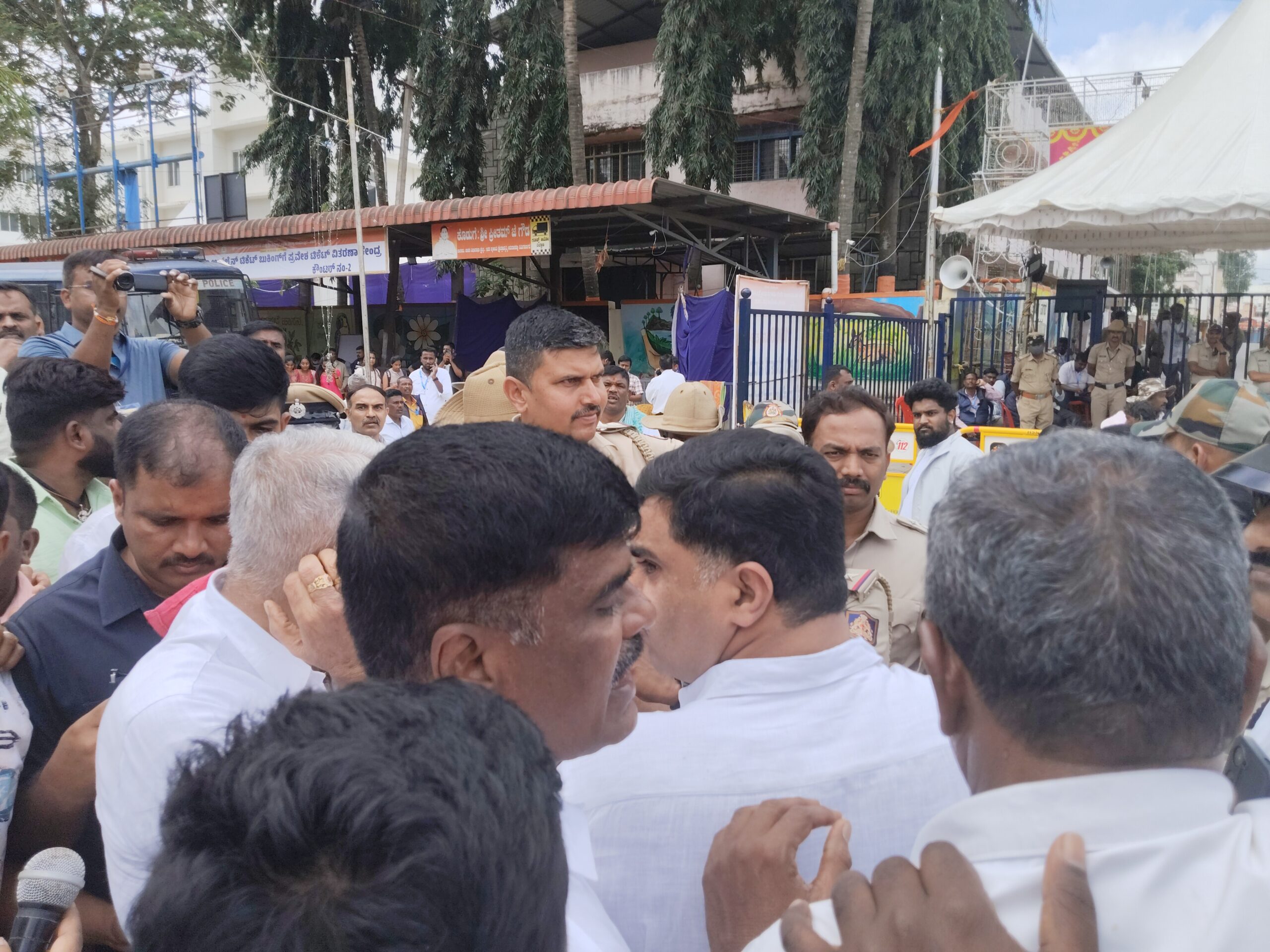ಜಿಲ್ಲಾಧಿಕಾರಿ ಕೆ.ಎಸ್. ಲತಾಕುಮಾರಿ ಸ್ಥಳಕ್ಕೆ ಬರಲೆಬೇಕೆಂದು ಪಟ್ಟು ಹಿಡಿದು ಬ್ಯಾರಿಕೇಡ್ ತಳ್ಳಾಡಿದರು. ಪರಿಸ್ಥಿತಿ ನಿಯಂತ್ರಿಸಲು ಎಸ್ಪಿ, ಎಸಿ ಸಾಕಷ್ಟು ಪ್ರಯೋಜನವಾಗಲಿಲ್ಲ.