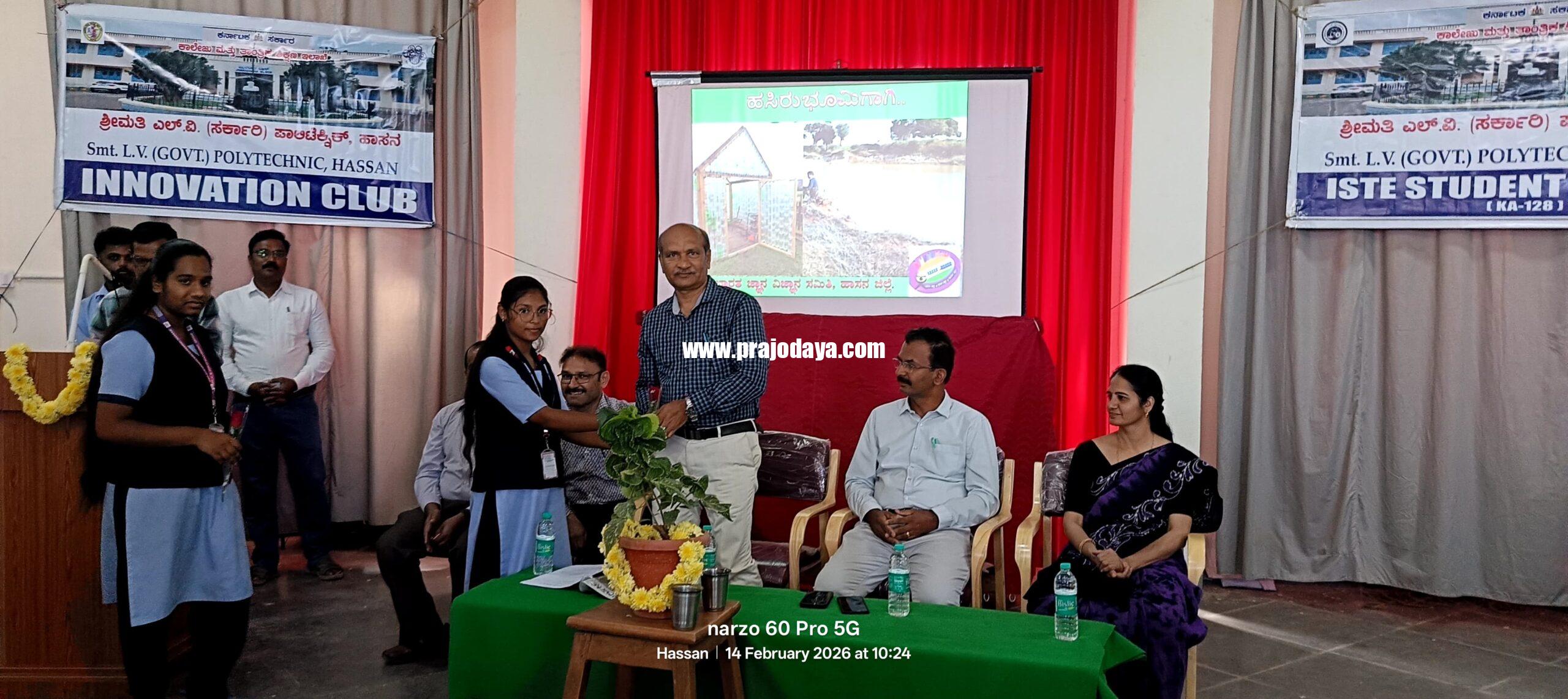 ಹಾಸನ: ಪರಿಸರ ಸಂರಕ್ಷಣೆ ಎಂದರೆ ಕೇವಲ ಸುಂದರ ಪದಪುಂಜಗಳ ವರ್ಣನೆಯಲ್ಲ ಅಥವಾ ದಿನಾಚರಣೆಯ ಸಂಮೋಹನ ಭಾಷಣವೂ ಅಲ್ಲ. ಇದು ಮಾತಿಗಿಂತ ಕೃತಿಯಲ್ಲಿ ತೋರಬೇಕಾದ ಮಹತ್ಕಾರ್ಯ. ಹಾಸನದ ಎಲ್.ವಿ. ಪಾಲಿಟೆಕ್ನಿಕ್ ಈ ನಿಟ್ಟಿನಲ್ಲಿ ಮಾದರಿಯಾಗಿ ರೂಪುಗೊಂಡಿದೆ ಎಂದು ಭಾರತ ಜ್ಞಾನ ವಿಜ್ಞಾನ ಸಮಿತಿಯ (BGVS) ತಾಲ್ಲೂಕು ಅಧ್ಯಕ್ಷ ಡಾ. ಎಚ್.ಜಿ. ಮಂಜುನಾಥ್ ಅಭಿಪ್ರಾಯಪಟ್ಟರು.