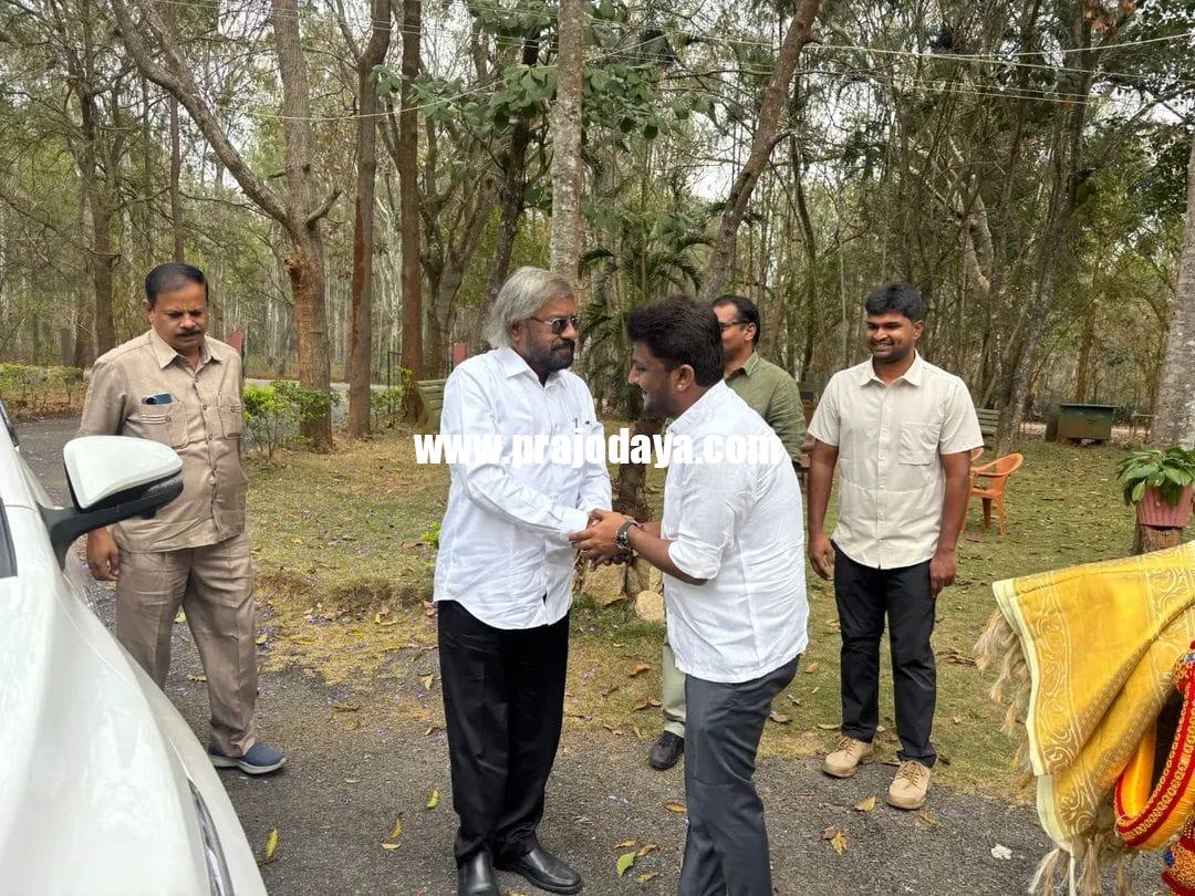 ಹಾಸನ: ನಗರ ಹೊರವಲಯದ ಗೆಂಡೆಕಟ್ಟೆ ಅರಣ್ಯ ಪ್ರದೇಶದಲ್ಲಿ ಅರಣ್ಯ ಸಚಿವ ಈಶ್ವರ್ ಖಂಡ್ರೆ ಅವರನ್ನು ಸಂಸದ ಶ್ರೇಯಸ್ ಪಟೇಲ್ ಭೇಟಿಯಾಗಿ ಹಲವು ವಿಚಾರಗಳ ಚರ್ಚಿಸಿದರು.